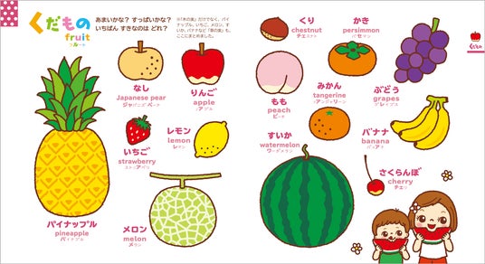 『0さい~4さい こどもずかん英語つき 改訂バージョン』には、電子版の絵本が2種類あります(※有料)。ひとつは、ページに登場する英語に“読みがな”が添えられた<読みがなつき>編。もうひとつは“読みがな”を省略した<読みがななし>編。