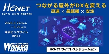 エイチ・シー・ネットワークス株式会社(本社:東京都台東区、代表取締役社長:田中 宗)は5月27日(水)~29日(金)の3日間にわたり、東京ビッグサイトで開催される「ワイヤレスジャパン2026」に出展します。