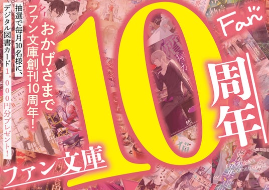 株式会社マイナビ出版(本社:東京都千代田区、代表取締役 社長執行役員:角竹輝紀)の文芸レーベル「ファン文庫」が3月20日に創刊から10周年を迎えたことを記念し、2026年5月から2027年2月末まで10カ月にわたり、毎月10名にデジタル図書カード1,000円分が当たる総額10万円のキャンペーンを実施します。