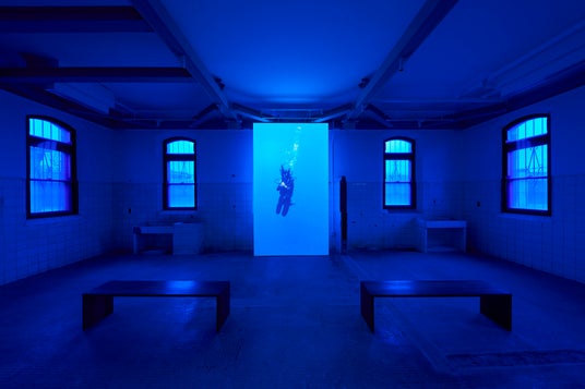ホンマエリとナブチによるアートユニット。来館者が抱く「人間の業(ごう)」や「罪と罰」への思索を深め、心を遠くへといざなう時空を創造。かつて医務室だった場所を、静かな祈りで満たしました。