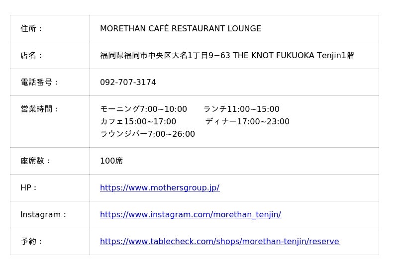 MORETHAN CAFE RESTAURANT LOUNGE基本情報
