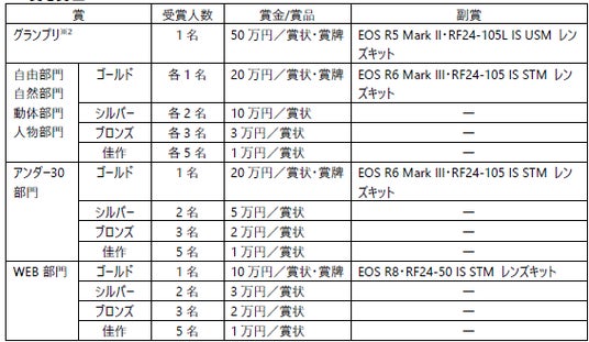 すべての応募作品を第一線で活躍するプロの写真家が審査し、各部門でゴールド賞、シルバー賞、ブロンズ賞、佳作を選出するとともに、全部門の応募作品の中で最も優れた作品を「グランプリ」※1として表彰します。