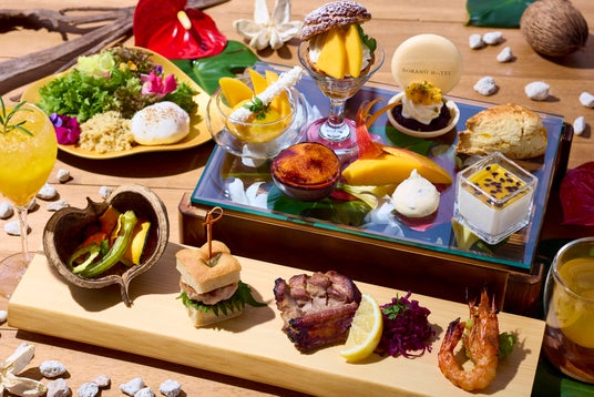 「SORANO HOTEL」では、2026年6月1日より、メインダイニング「DAICHINO RESTAURANT(ダイチノレストラン)」 にて、フレッシュな国産マンゴーとパッションフルーツを贅沢に使用しトロピカルな味わいを最大限に引き出した、期間限定アフタヌーンティー「マンゴーアフタヌーンティー」のご提供を開始いたします。南国の葉を敷いたガラスプレートの上には、芳醇な甘みととろけるような果肉のマンゴーを主役に、トロピカルな香りと甘酸っぱさが魅力のパッションフルーツを合わせ、彩り豊かなスイーツを美しく盛り合わせました。