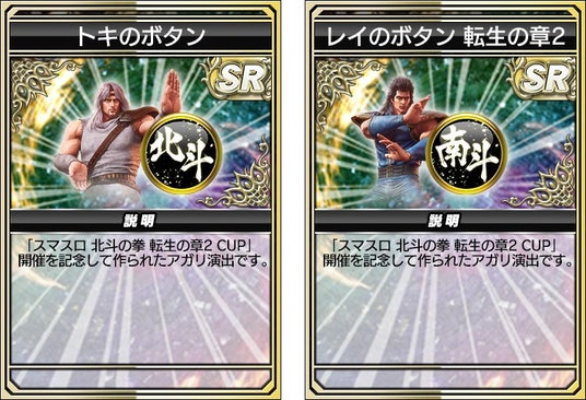 「ケンシロウ 転生の章2」「ラオウ 転生の章2」など、全5種の進化型SPキャラ(SSR)が登場します。