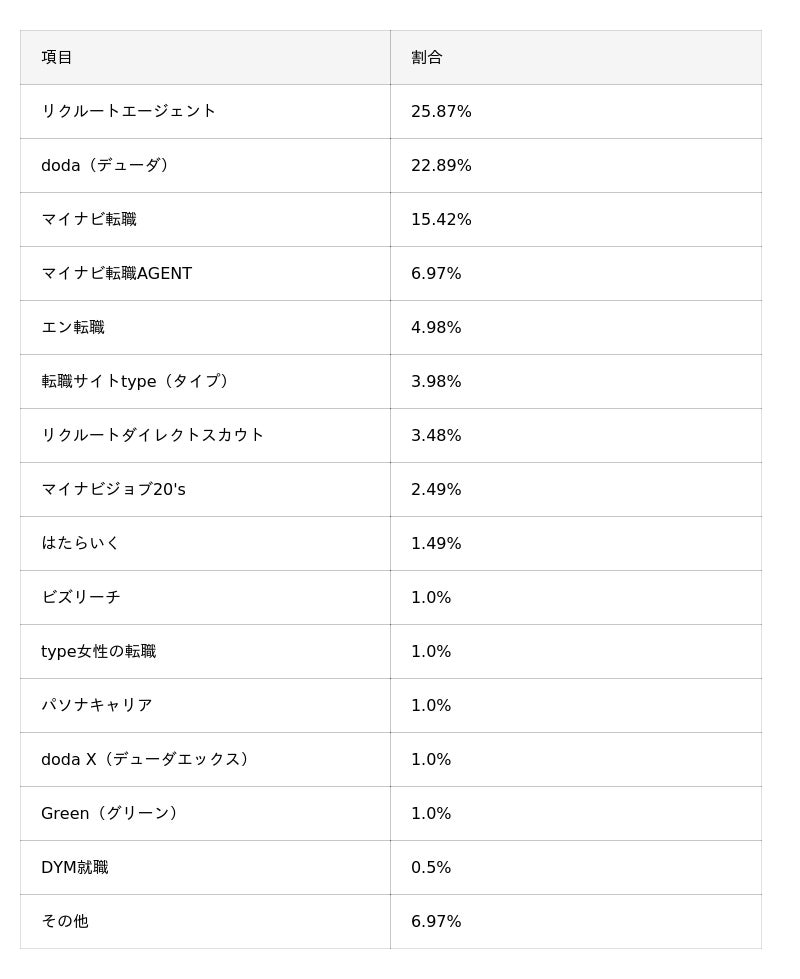 - 利用した転職サイトは「doda」(39.3%)が最多、メイン利用ではリクルートエージェント」(25.9%)がトップとなり、複数サービスの併用が進む中で、用途に応じた使い分けがされている。実際に2社以上利用は59.2%と過半数を占める結果となった。
