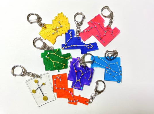 プラバンに星座の絵を描いて焼き、オリジナルのキーホルダーを制作します。好きな星座を選んで、その星座が位置する星空をデザインしてみましょう。
