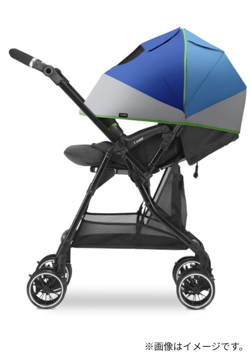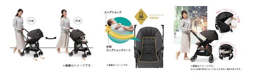 軽量車体ながら、赤ちゃんに伝わる路面からの不規則な揺れを軽減するために、卵を落としても割れないほどの超・衝撃吸収素材「エッグショック」をシート全面と、頭部には枕状で搭載し、赤ちゃんの乗り心地にこだわりました。東京パノラマライン沿線の特徴である空と水辺のブルーと豊かな緑を象徴するグラデーションラインを表現した大型幌は、夏の強い日差しから赤ちゃんのデリケートなお肌を守ります。背面間口には、荷物をたっぷりと収納できる伸縮するネットがついたマルチネットバスケットを搭載し、利用者の使い勝手の良さにもこだわりました。