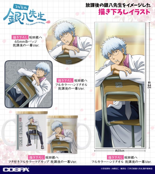 公式キャラクターコスチュームやアパレル・グッズの企画、開発、製造を行う株式会社コスパ(所在地:東京都渋谷区、代表取締役:松永芳幸)はTVアニメ「3年Z組銀八先生」新作グッズを発表した。