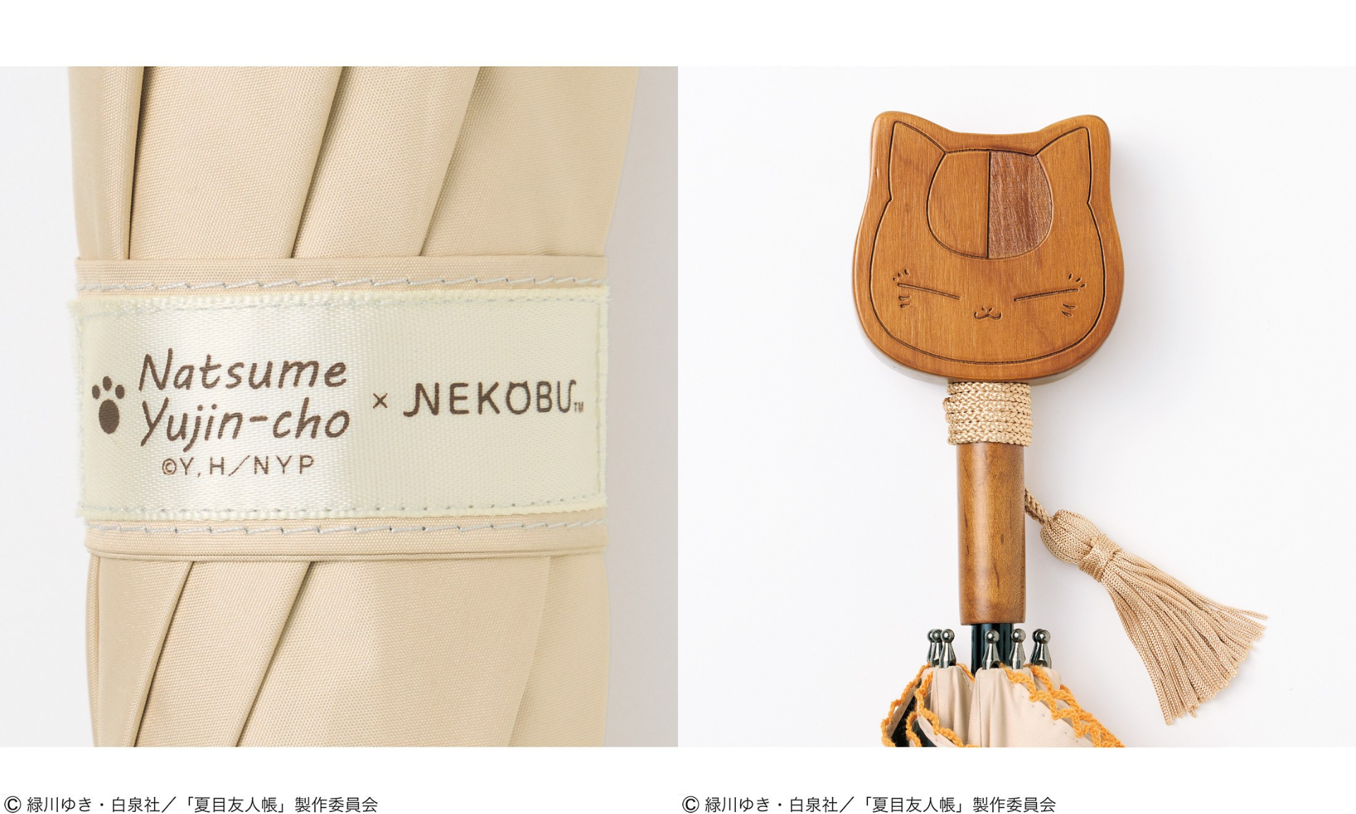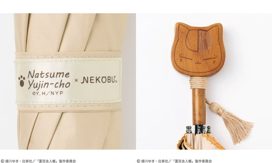 【NEW】夏目友人帳×猫部 遮光も遮熱もOK ニャンコ先生の木彫りがかわいい晴雨兼用傘
