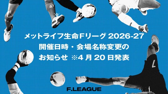 「メットライフ生命Fリーグ2026-27 ディビジョン1」「メットライフ生命Fリーグ2026-27 ディビジョン2」の一部試合において開催日時・会場が変更されましたのでお知らせいたします。