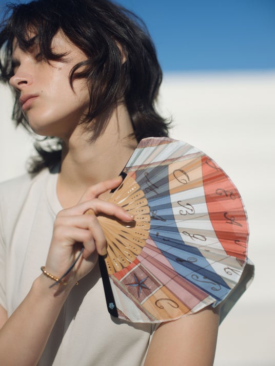 〈扇子〉クロスワード ポリエステル100% ・竹・牛革 ¥12,100(税込)