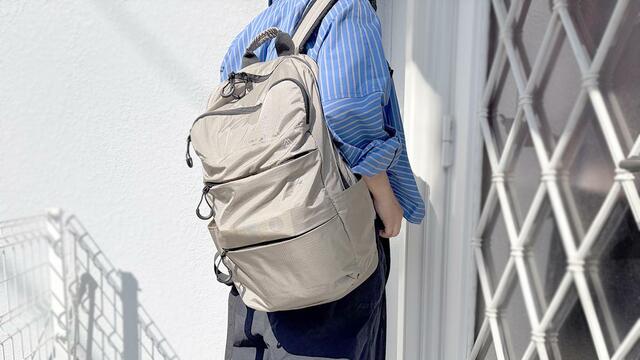 私にとって23Lというサイズは、主にタウンユース用。最近はウォーキングに使うこともあるので、たくさん歩くときも快適で、街に馴染むボリューム感とデザインであることが大切です。