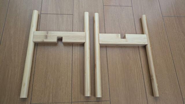 届いたときの状態は2つのパーツに分かれています。これを組み立てるとスタンドになるんです。
