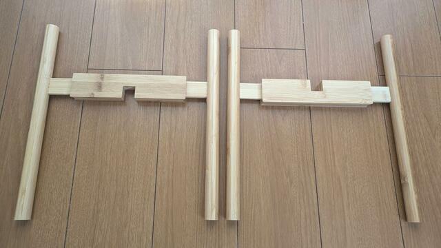 組み立て前に伸ばしてみると、このように横にかなり広がるのがわかります。