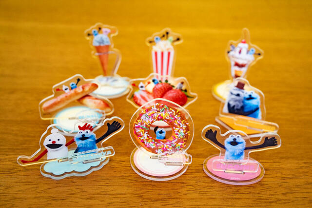 食べものとスンスンたち、スンスンのロゴやワードの2個のスタンドがついて、立体的に作れます。