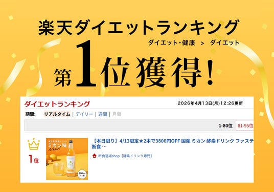 発売直後から多くの支持を集め、先日、楽天市場ダイエットドリンクランキング1位※を獲得しました。「おいしくて続けやすい」「無理なく取り入れられる」といった点が評価され、これまで酵素ドリンクにハードルを感じていた方からも支持を集めています。