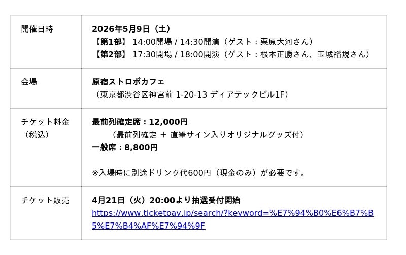 『田淵累生ファンミーティング2026』開催概要