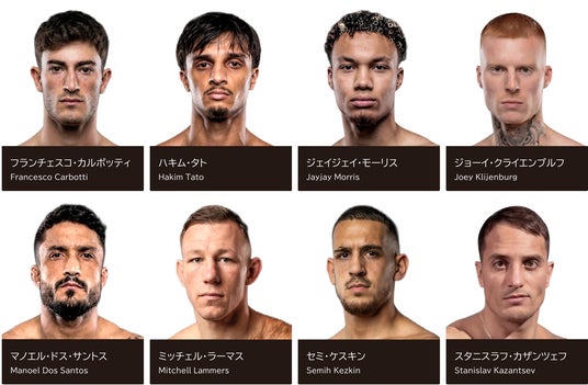 モーリスは、オランダ期待の新鋭のWFLオランダ-67kg王者。12戦6勝(1KO)5敗1分の戦績を残し、今回のトーナメントで優勝を狙う。対するオランダのクライエンブルフは8戦4勝(2KO)4敗の26歳で、名を広めたいところ。