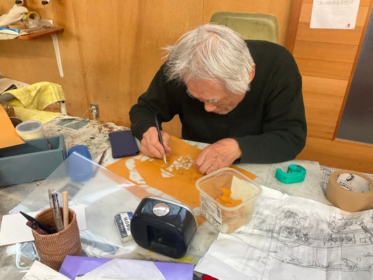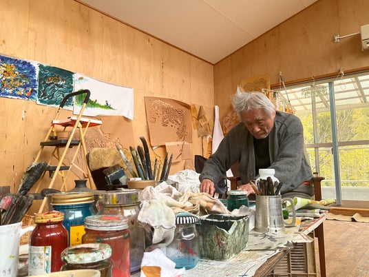 淡路島のアトリエで本作を制作する著者(2025年12月)