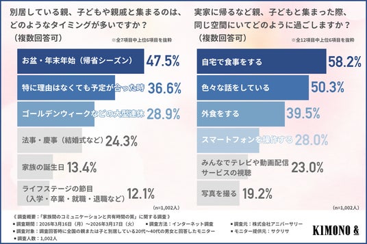 そこで今回、株式会社アニバーサリー(振袖・袴レンタル・フォトスタジオ「KIMONO&(キモノアンド)」を運営 https://kimonoand.kimono-yamato.co.jp/)は、全国の親または子と別居している20代~40代の男女を対象に、「家族間のコミュニケーションと共有時間の質」に関する調査を実施しました。