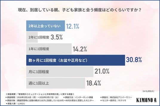 約3割が帰省シーズンなどのタイミングが最も多く、2年以上会っていない方も1割いるなど、離れて暮らす家族と頻繁に顔を合わせる機会は少ない実態が浮き彫りになりました。