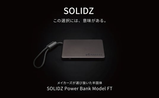 株式会社キーエンス100%出資の新規事業会社、株式会社メイカーズ(本社:大阪市北区、代表取締役社長:橋本洋平)は、半固体電池を採用したモバイルバッテリー『SOLIDZ Power Bank Model FT』をAmazonにて販売開始しました。電池構造そのものから見直した安全設計が最大の特長です。