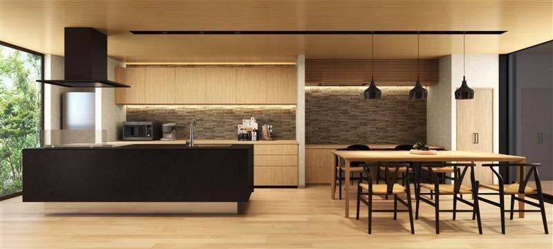 本展示場のインテリアデザインは、日本の伝統的な美意識と北欧のミニマルで機能的なデザインを融合したジャパンディ(Japandi)スタイル。