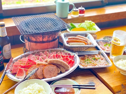 農場直送の新鮮なモンヴェールポーク、希少部位、大人気の自家製ソーセージやハムが全て食べ放題!七輪の炭火で焼くお肉の味は格別です。