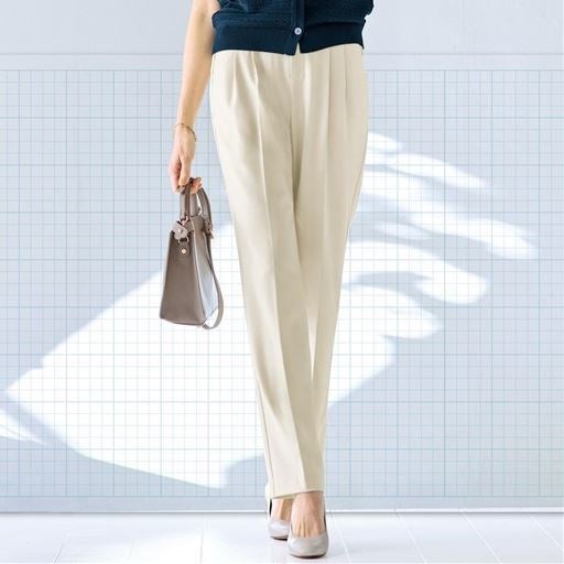 大人世代の体型に合わせ、どの角度から見ても美しいシルエットと心地よさを追究した美脚パンツ、体型の変化が見られはじめる50代からの大人世代におすすめです。