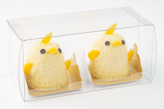 愛知県の地元食材「名古屋コーチン」の卵を使ったプリンを、バニラの香り豊かなババロアで包み込み、粉末状にしたスポンジをまとわせた、ふんわり「ひよこ」の形に飾り付けた生スイーツです。