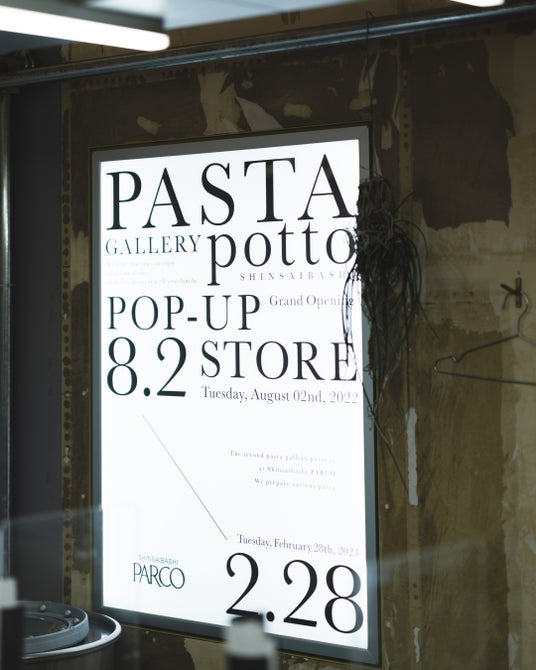 『pasta gallery potto』は、南船場で長く愛されてきたpottoの考え方を受け継ぎ、「一人でも気軽に入りやすく、ちゃんとおいしい生パスタを楽しめる店」として営業してまいりました。心斎橋PARCO地下1階での営業では、感度の高いお客様や買い物途中のお客様、近隣で働く方々やインバウンドのお客様など、幅広い層にご来店いただき、Google口コミでも高い評価をいただいています。