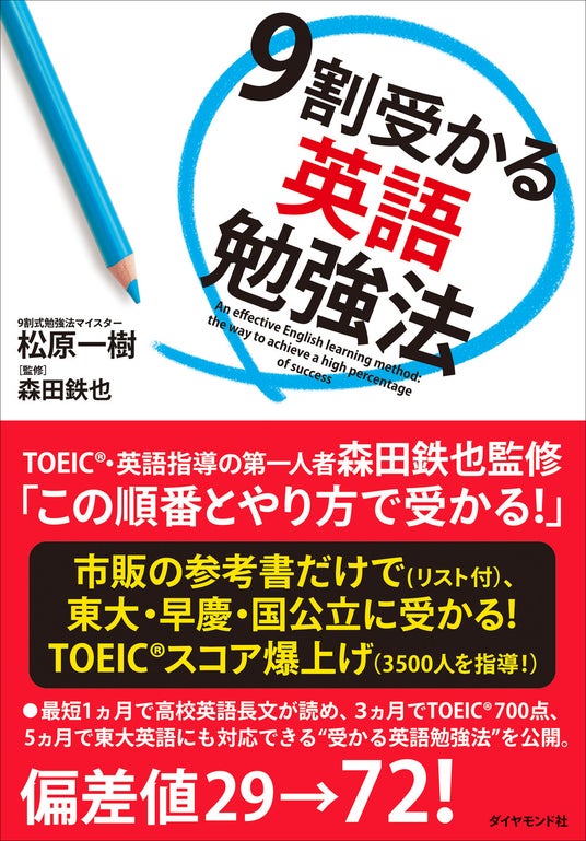 高額教材や授業は一切不要!市販の参考書だけで、東大・早慶・国公立合格からTOEIC(R)スコア爆上げまでを実現する『9割受かる英語勉強法』(松原一樹 著、森田鉄也 監修、ダイヤモンド社 刊)が4月22日に発売となります。