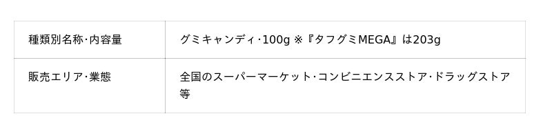 カバヤ食品株式会社のグミカテゴリー主力ブランド『タフグミ』の年間売上高(2025年度売上高)が、当社の製品ブランドとして初めて100億円を突破し、同ブランドの主力製品『タフグミ』は、2025年度もグミ市場単品売上金額No.1※となり、3年連続※でその称号を獲得しましたので、お知らせします。