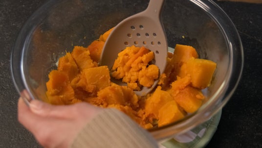 食材の湯切りだけでなく、マッシャーとしても使えます(穴あきレードル)