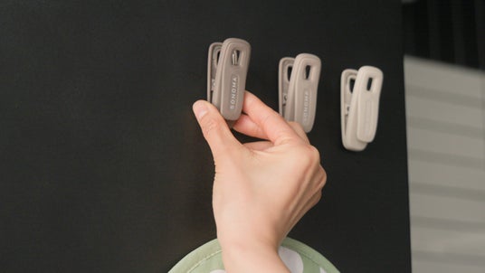 マグネット付きで冷蔵庫などにくっつけて収納可能なクリップの3カラーセット。前面部分にカッターが付いているので開けづらい袋もはさみを使わずすぐにカットできます。キッチンだけでなく、玄関のドアにつけて封筒などを開封するときにも便利なアイテム。
