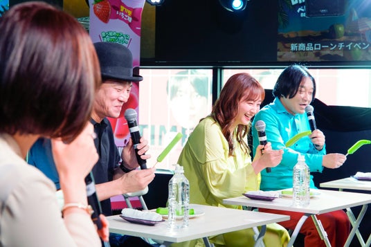 スペシャルゲストセッションでは、藤本美貴さん、永野さん、アイスマン福留さんが登壇し、「ベロベロバー」を実際に試食しながらトークを展開。凍った状態と少し溶けた状態で食感が大きく変わる点について、ゲストからは“新感覚”“体験型”“子どもにも楽しい”といった感想が寄せられました。とくに、溶けても垂れにくく、食べ進めるほどに食感の変化を楽しめる点は、会場でも大きな驚きと笑いを誘いました。