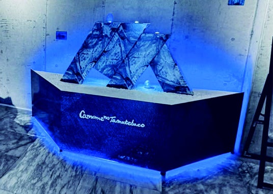 ・大船渡を代表する景勝地「穴通し磯」をモチーフにデフォルメしデザインしたモニュメント