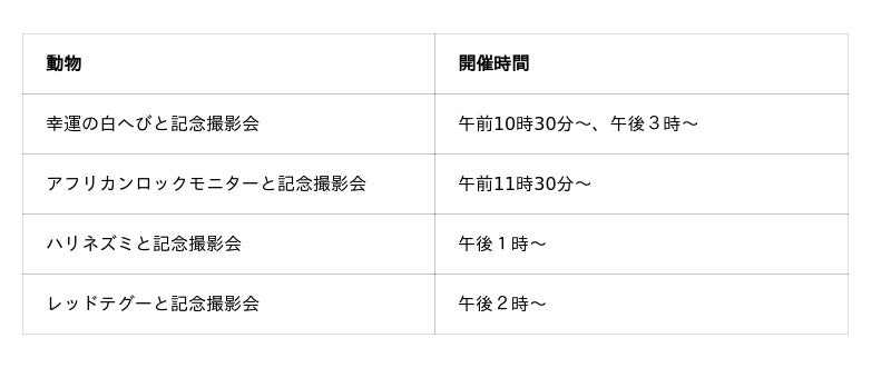期間中は毎日、生きた動物たちと一緒に写真撮影ができます。