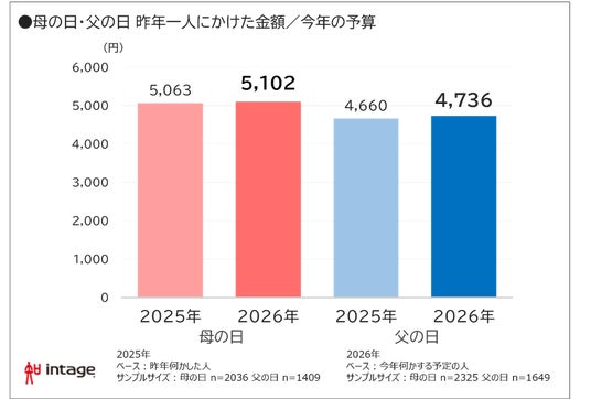 意向差が鮮明。実施率・予算とも母の日が上回り、母の日5,102円、父の日4,736円