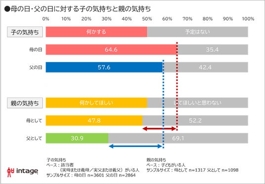 ・一方でこの日に「何かしてほしい」母は47.8%、父は30.9%にとどまる