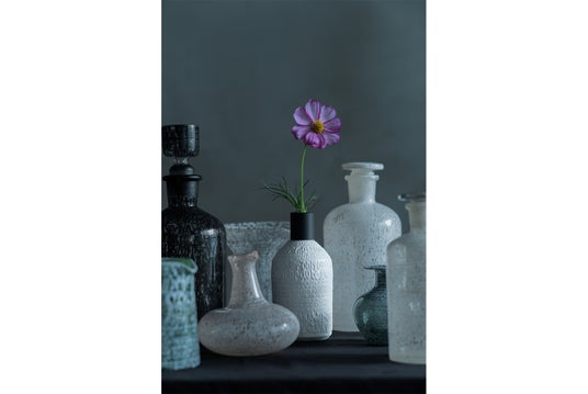 使用後は、付属のアルミキャップに付け替えることで、一輪挿しに。磁器ボトルには真っ白なシルクマイカ釉薬を使用。使い込むほどに風合いが変化し、手にした人それぞれの時間を静かに刻んでいきます。