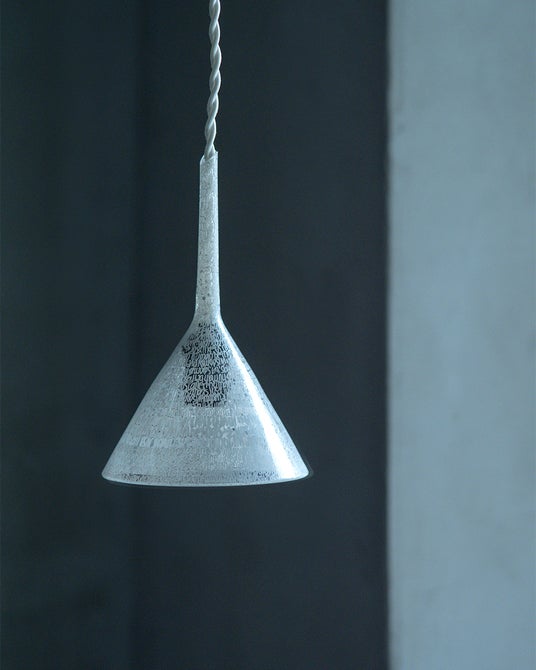 展示される作品は、山崎氏と茂田の「詩が日々の暮らしに寄り添えるように」という共通の願いから、ヴィンテージの花器やライト、鏡といった生活空間に根差したアイテムに山崎氏がタギングを施しました。暮らしに寄り添う小ぶりな佇まいながらも、力強い存在感とメッセージを放ちます。