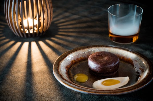 ディナー後は満天の星のもと、船首に設えられたソファベッドで寛ぐ贅沢なディジェスティフを堪能します。食後酒には、芳醇な燻製の香りをまとった泡盛やウイスキーを用意し、デザートには、マンゴーソースやパッションフルーツのホイップクリームを添えたフォンダンショコラを提供します。南国のフルーツと中からとろけ出す濃厚なショコラの風味と香りが、夜の静寂の中で一層際立ちます。島の文化と夜の自然が調和した豊かな味覚がクルーズ体験を締めくくります。