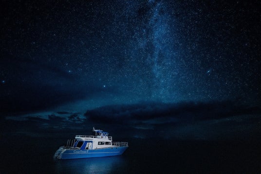 ルーズで天の川を観測するには最適な季節です。視界を遮るものがない船上で、水平線まで星空が広が