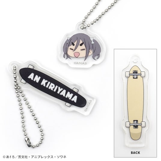 ワンポイントとして、アンとスケボーのアクリルキーホルダーを付属。