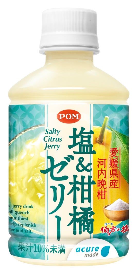 - 伯方の塩と愛媛県産河内晩柑果汁を使用した、小腹満たしにもぴったりの新感覚な熱中症対策をご提案します。ほんのり塩味と、河内晩柑のすっきり爽やかな味わいを、ゼリー特有の食感とともにぜひお楽しみください。