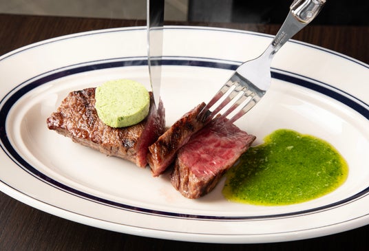 脂身が少なく、赤身の旨味とやわらかな食感が特徴の和牛ランプ肉200gを豪快にグリルします。遠赤外線調理器「チャーグロー」で焼き上げることで、ガス式ながら炭火のような香ばしい仕上がりになります。