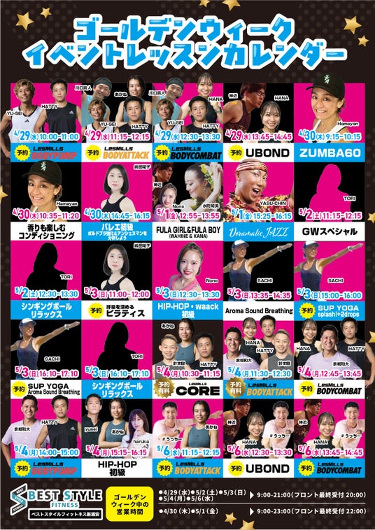 株式会社BEST HERBS(代表取締役社長:塚田正之)の運営するBEST STYLE FITNESSは、“休むだけじゃないGW”をテーマに、4/29(水)~5/6(水)期間中、3店舗で異なる“動く理由”を提案する特別レッスンを展開します。