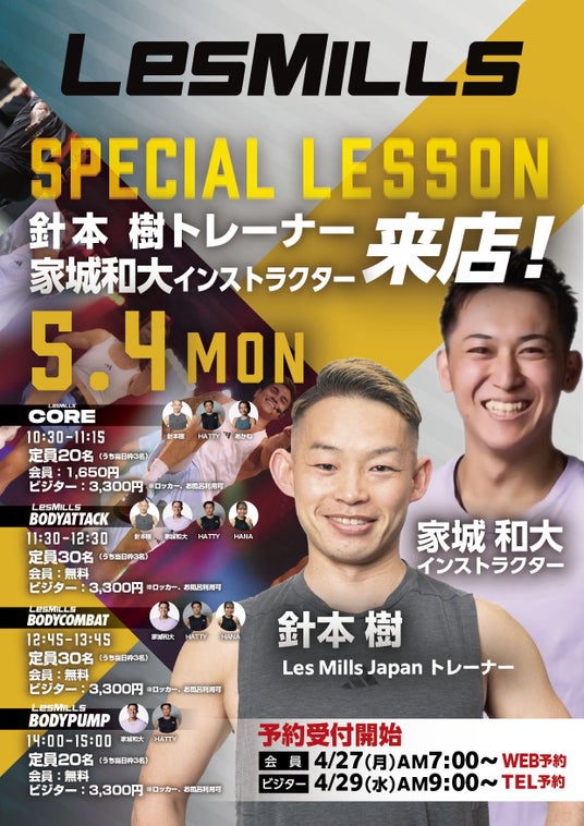 さらに5月6日には、Les MILLS JAPAN TAPチームのインストラクターを招き、 大人気のマスタークラスを2つ開催。