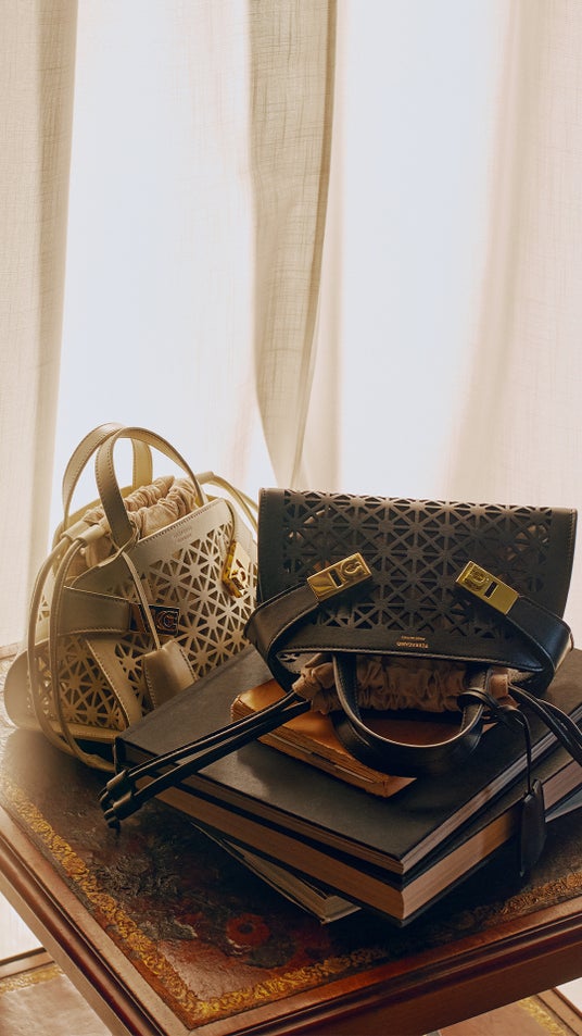 過去へ敬意を払いながら、現在にも語り掛けるこれらのアイテムは、洗練された佇まいと多様なシーンに寄り添い、ひと目でフェラガモとわかる美学を体現している。
